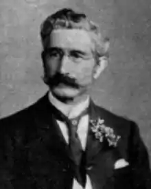 Robert McArtney was mayor in the years 1900–1901 for a total of sixteen months. After 17 continuous years on council, he retired in April 1901.[27][28] He contested the 1908 election in the Wairau electorate, but was defeated by John Duncan.[29] McArtney was succeeded by Richard McCallum (1863–1940), who was elected unopposed on 16 April 1901.[30] McCallum served as mayor from 1901 to 1903 for two terms.[31][32] McCallum later represented the Wairau electorate in Parliament from 1911 to 1922,[33] and was from 1930 to 1937 a member of the Legislative Council.[34] The 29 April 1903 election was contested by William Henry Macey and William Carr, with Macey gaining 291 votes to 287.[31] Macey (born 1850) served as mayor in 1903–1905 for two terms.[35] Macey was a photographer who had come to New Zealand from Islington in London at the age of seven.[36]