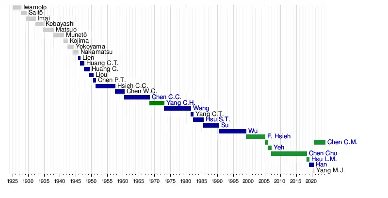Oct 1945–presentMayor of Kaohsiung高雄市市長Gāoxióng Shì Shìzhǎng