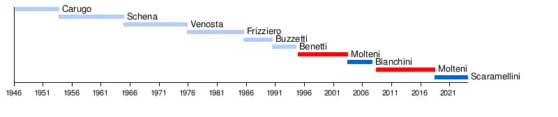 | 9 | Marco Scaramellini | 26 June 2018 | 16 May 2023 | Ind | FI • LN | 2018 | |