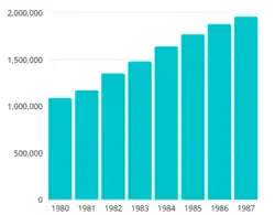 In 1980, Feinstein proposed a $1.087 billion city budget, a $125 million increase from the 1979 budget of $962 million and the first budget in the city's history to be higher than $1 billion, which called for the firing of 62 city employees, the elimination of 515 vacant positions, and a decreased budget for the San Francisco Fire Department.[67][68] The Board of Supervisors voted six to one to approve a $1.081 billion budget, which was around $8.5 million less than the budget proposed by Feinstein.[69] She proposed a city budget of $1.17 billion in 1981.[70] In 1982, she proposed a $1.35 billion budget which increase police funding, decreased employees in other city departments, and which had an estimated surplus of $62 million.[71] At the start of January 1983, San Francisco had a $150 million budget surplus with plans for $80 million to be saved, around $70 million to be spent on capital improvements, and $20 million to be spent on street repairs, park renovations, and library renovations.[72] She proposed a $1.48 billion budget, which would increase police, fire, health, and mass transit funding, for the fiscal year of 1983 to 1984.[73] She proposed a $1.64 billion budget in 1984, with a budget surplus of $122.6 million.[74] She proposed a $1.77 billion budget in 1985, which had an estimated budget surplus of $59.4 million.[75] Feinstein proposed a $1.88 billion budget in 1986.[76] In 1987, Feinstein proposed a $1.96 billion budget.[77]
