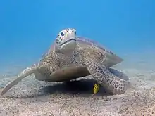 Seagrass beds in sheltered areas support wildlife such as turtles and dugongs. 40 fish species have been found only around seagrass beds. Around 2000 turtles are estimated to live within the Mayotte lagoon.[2]: 12 Five different turtle species are found around Mayotte, some of which nest on the region's beaches.[2]: 27 96 sponge species have been identified within the lagoon.[2]: 23