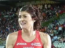 María Teresa ("Mayte") Martínez Jiménez (born 17 May 1976[1] in Valladolid) is a Spanish athlete competing in the 800 m. She has reached 4 consecutive finals in the World Championships (she did not take part on 2003 Championships in Paris), being third with an incredible last straight in Osaka. She took part in 2000 and 2004 Olympic Games, being eliminated in the semifinals (she was the last on both of them). She could not participate in 2008 Olympic Games in Beijing with an injury (fasciitis plantar).