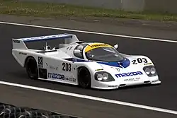 The Mazda 757 is a prototype racing car built by Mazdaspeed for the 24 Hours of Le Mans running under the IMSA-spec GTP class. It replaced the previous lineage of Group C2 class cars which ended with the 737C and was the first chassis built entirely by Mazdaspeed and designed by Nigel Stroud. The 747 designation was skipped to avoid confusion with the second generation Mazda RX-7, which was developed under the codename P747.[1] The 757 used a new 3-rotor 13G Wankel engine.