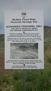 - ↑ "McAbee Fossil Beds Heritage Site". Province of British Columbia.