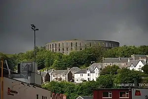 McCaig's Tower,[1] also known by tourists (but never by locals) as McCaig's Folly,[2] is a prominent tower on Battery Hill[3] overlooking the town of Oban in Argyll, Scotland. It is built of Bonawe granite taken from the quarries across Airds Bay, on Loch Etive, from Muckairn, with a circumference of about 200 metres (660 ft) with two-tiers of 94 lancet arches (44 on the bottom and 50 on top). It is a Grade B Listed historic monument.