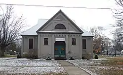 Inside are two rooms, both 27 feet by 33 feet. A small kitchenette is in the rear, and the building contains bathrooms and a coatroom.[3]