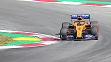 The McLaren MCL34 was a Formula One racing car designed by Pat Fry and constructed by McLaren to compete in the 2019 Formula One World Championship. The car was driven by Carlos Sainz Jr., who joined the team from the Renault Sport F1 Team; and 2018 Formula 2 Championship runner-up Lando Norris.[5][6] Sainz Jr. and Norris replaced Fernando Alonso and Stoffel Vandoorne, both of whom left the team at the end of the 2018 championship. The MCL34 was powered by a Renault engine,[7][8] the Renault E-Tech 19,[2] and made its début at the 2019 Australian Grand Prix. The car was considered to be a big improvement compared to its disappointing predecessor, the MCL33,[9][10] often being the best of the rest in qualifying and race trim behind the three leading teams: Mercedes, Ferrari and Red Bull.[11]