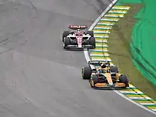 Norris fell ill before the São Paulo Grand Prix, prompting McLaren to prepare Nyck de Vries as a replacement.[102] Norris was however able to participate in the weekend, qualifying fourth for the final sprint of the season, while Ricciardo qualified fourteenth.[103] Norris finished seventh in the sprint,[104] but started the race sixth after penalties for other drivers, while Ricciardo finished eleventh.[105] Ricciardo collided with Kevin Magnussen on the opening lap, which caused both to retire from the race and for Ricciardo to be awarded a three-place grid penalty for the next race.[106] The incident also required a safety car, and after the restart Norris collided with Leclerc.[107] Although both continued the race, Norris was awarded a five-second time penalty, although he also retired from the race with electrical issues.[108] McLaren lost fourth to Alpine in the WCC.