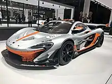 The McLaren P1 is a sports car produced by British marque McLaren Automotive. It is a plug-in hybrid with a mid-engine layout. It was first shown at the 2012 Paris Motor Show,[5] with sales of the P1 beginning in the United Kingdom in October 2013 and all of the limited run of 375 units sold by November 2013.[6][7] Production ended in early December 2015.[8] The United States accounted for 34% of the units and Europe for 26%.[8]