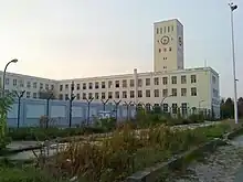 Built in the 1930s, the structure originally housed the Telefunken headquarters and factory, until 1941 a joint venture of Siemens & Halske (S & H) and Allgemeine Elektricitäts-Gesellschaft. During the years of National Socialism, the buildings were mainly used for development and production of military equipment, and the radar-guided flak system was perfected there.[1] In 1945 the Telefunken plant was converted into barracks for occupation soldiers, for which the German government paid the owners of the site a yearly rent for its use as an army barracks.[2]