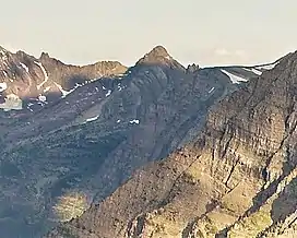 McPartland Mountain (8,417 feet (2,566 m)) is located in the Livingston Range, Glacier National Park in the U.S. state of Montana. McPartland Mountain is a little more than a mile south of Heavens Peak.[3] The mountain's name is believed to refer to Frank McPartland, of eastern Montana, who worked around nearby Lake McDonald for two seasons, and drowned in a boating accident on the lake in the 1890s.[4]