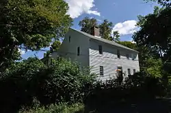 The interior of the main block begins with a small vestibule area which has a narrow stair rising to the second floor. The main hall is to the right and the parlor to the left. The original kitchen occupies a space behind the central chimney, with smaller pantry rooms on either side. Decoration in the front rooms includes relatively modest vernacular paneling. The upstairs presently has three rooms, two in front and a single large one in the back, although there is evidence that the room configuration has changed over the years.[2]
