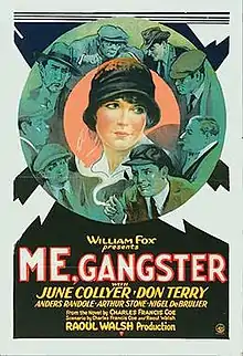 Me, Gangster is a 1928 American synchronized sound gangster film directed by Raoul Walsh. While the film has no audible dialog, it was released with a synchronized musical score with sound effects using the sound-on-film movietone process. The film stars June Collyer, Don Terry, Anders Randolf and a young Carole Lombard.[1][2]