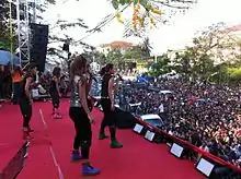 The music scene in Myanmar continued to change with the lifting of censorship regulations.[23] According to Heather MacLachlan, a professor at the University of Dayton in Ohio and author of the book "Burma's Pop Music Industry: Creators, Distributors, Censors",[24] the struggle for women's rights, especially in the music industry, goes beyond the censors: "It's not just the censors, I mean, those are Burmese values."[25] "I've NEVER seen girls behave like that, ever."[17] Only a handful of venues are permitted to host concerts in general in Myanmar with women playing in bars often being equated to the sex industry.[26]