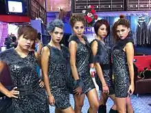 The Me N Ma Girls (formerly known as The Tiger Girls) is the first all-girl pop hip hop dance ensemble from Myanmar discovered by Australian dancer Nicole "Nikki" May and Burmese entrepreneur U Moe Kyaw in 2010.[2][3][4] The group currently consists of four Burmese women: Ah Moon, Cha Cha, Htike Htike (pronounced as "Tie Tie"), and Kimi. The girls released their first cover album in 2010, "Year of the Tiger Girls."[5] In 2011, the group split from Kyaw and was renamed as the "Me N Ma Girls.In 2016, the group renamed again "Me N Ma Girls" to "MyaNmar Girls"[6]