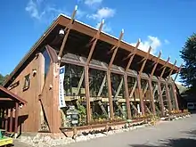 The main building provides administrative rooms for the farm, and meeting rooms for local groups. It is an example of Walter Segal system of self-build construction which is environmentally-friendly in its use of materials and energy. It is a low-energy building using the principle of solar gain; it has a turf roof and uses a reed bed drainage treatment system. It was officially opened by the Environment Secretary, Michael Meacher and was also visited by Prince Charles in 2002.[7]