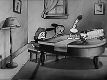 Oswald and Kitty playing the piano.