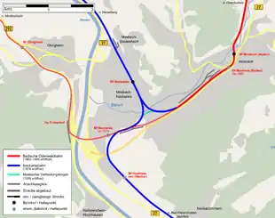 1. 1 2 Heß, Jürgen; Hoffmann, Herbert; Luksch, Siegbert (29 November 2013). "11 Chronologie". Rückblick auf 150 Jahre Bahnstandort Meckesheim (in German). Retrieved 18 February 2018. (Series on Meckenheim local history, No 5)