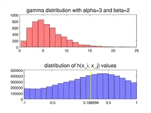 In other words, we split the distribution into all values greater or equal to the median and all values less than or equal to the median. We define a kernel function whose first variable is over the greater values and whose second variable is over the lesser values. For the special case of values tied to the median, we define the kernel by the signum function. The medcouple is then the median over all values of .