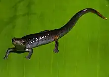 The Medellin climbing salamander (Bolitoglossa phalarosoma) is a species of salamander in the family Plethodontidae. It is found in Colombia and Panama. Its natural habitat is subtropical or tropical moist montane forests. It is threatened by habitat loss.