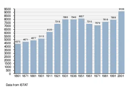 - ↑ "Popolazione Residente al 1° Gennaio 2018". Italian National Institute of Statistics. Retrieved 16 March 2019.