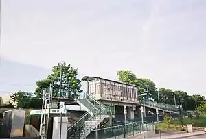 ![]() View of Medford station's sheltered platform from the parking lot. | |||||||||||