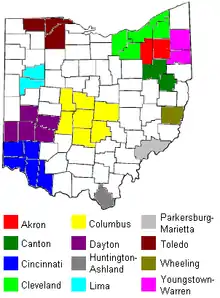 Map showing radio market areas in Ohio.