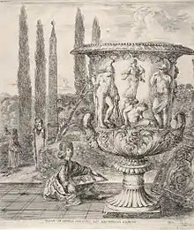 The vase reappeared in the 1598 inventory of the Villa Medici, Rome, but its origin is unknown. Transferred from the villa in 1780,[1] it has ever since been displayed in the Uffizi Gallery, today in the first-floor Verone sull’Arno overlooking the River Arno.[2] It was often illustrated in engravings, the most famous of which is by Stefano della Bella (1656); he depicted the young Medici heir who would become Grand Duke Cosimo III seated, drawing the vase.