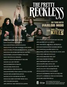 The Medicine Tour is the second headlining concert tour by American rock band The Pretty Reckless in support of their debut studio album, Light Me Up (2010), and their second extended play, Hit Me Like a Man EP (2012).[1][2]