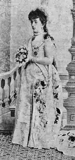 Mediha fell in love with Ahmed Necib Pasha, son of Sheikh Necibzade Sami Bey, whom she had happened to see.[7] Her uncle, Sultan Abdulaziz, approved of this marriage, and the preparations for the wedding preparations began during his reign.[8] Abdul Hamid who had frowned on Necib's family because they had connections with Ali Suavi, sent Necib to Paris. It was only when Verdicenan Kadın appealed to Perestu Kadın that Necib was recalled. He was made a pasha and the marriage was arranged.[9] Her dowry was prepared in 1876, along with her half-sisters Behice Sultan, Seniha Sultan and Naile Sultan.[10] The marriage contract was concluded on 22 January 1879 and the wedding took place on 8 June at the Yıldız Palace.[11] The couple was allocated Tarlabaşı Palace as their residence.[10]
