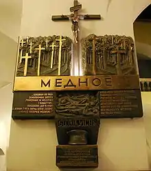 During World War II Mednoye was a centre of heavy tank fighting (October 1941) which formed part of the Battle of Moscow. It also became known as a NKVD mass execution site. Between April 3 and April 19, 1940, 6,311 Polish officers from the Ostashkov POW camp were brought to the area of Mednoye and subsequently shot to death behind the village of Yamka during the Katyn massacre.