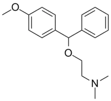 - ↑ US 2668856, Morren H, "P-methoxy benzhydryl ethers", issued 1954, assigned to UCB SA.
