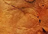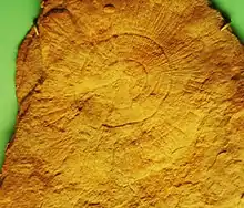 | Medusinites asteroides from the Ediacaran Ediacara Member of the Rawnsley Quartzite in the Ediacara Hills, South Australia on display at the US. National Museum, Washington | |