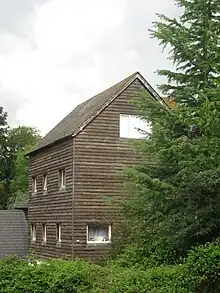 This mill was clad in white weatherboarding, under a peg tile roof. It had an overshot waterwheel. It was demolished before World War Two.[Note 1] [6][32]