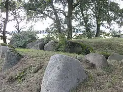 Megaliths in Mecklenburg-Vorpommern are the subject of an abundance of lore, dealing primarily with giants, fairies, dwarfs, subterraneans and hidden treasures.[19] The giant tales relate primarily to the megaliths' creation, which was assumed to be the result of stones lost or thrown by giants, or of giants building houses, ovens or tombs.[19] Thus, the population refers to dolmens as Hünengräber ("giants' tombs", Sg. Hünengrab).[19][20]