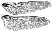 Meganeura is a genus of extinct insects from the Late Carboniferous (approximately 300 million years ago). They resembled and are related to the present-day dragonflies and damselflies, and were predatory, with their diet mainly consisting of other insects. The genus belongs to the Meganeuridae, a family including other similarly giant dragonfly-like insects ranging from the Late Carboniferous to Middle Permian. With a wingspan about 65–75 cm (2.13–2.46 ft),[1][2][3] M. monyi is one of the largest-known flying insect species.
