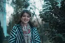 Mehrinoz Abbosova (born July 23, 1995; Uzbekistan) is an Uzbek poet, journalist, and literary critic. In 2017, Abbosova was appointed by Uzbek President Shavkat Mirziyoyev as chair of the newly established Republican Council of Young Artists. In this role, she led numerous festivals and other projects to support young artists across Uzbekistan. Abbosova was also involved in projects aimed at creating quality digital content in Uzbek, including the WikiStipendiya edit-a-thon on Uzbek Wikipedia. Since 2022, Abbosova has served as an advisor to the director of the Youth Affairs Agency of the Republic of Uzbekistan.
