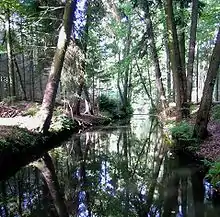 The Meiße rises south of Wietzendorf in the nature reserve of Großes Moor (near Becklingen).[2] Originally the upper course of the upper Wietze (Örtze) was the headstream of the Meiße before the Großes Moor diverted the Wietze into the River Örtze at a point south of the sharp bend in the river near Wietzendorf as a result of headward erosion. The Meiße flows through the villages of Bleckmar, Hasselhorst (in the unincorporated area of Lohheide on the Bergen-Hohne Training Area), Belsen, Hörsten, Gudehausen and Hartmannshausen (all three also belonging to Lohheide), as well as Meißendorf, and discharges into the Aller south of Hodenhagen after about 41 kilometres (25 mi).