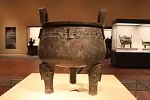 Mei County or Meixian (simplified Chinese: 眉县; traditional Chinese: 眉縣; pinyin: Méi Xiàn) is a county under the jurisdiction of the prefecture-level city of Baoji, in the west of Shaanxi province, China. It is one of the birthplaces of the Western Zhou culture, during which it was known as Taiguo (邰国). In 794 BC Duke Zhuang of Qin established a town known as Yiyi at its location. During the Eastern Han dynasty it became known as Yinwu.[1] In 2003, 27 Zhou culture bronze ding vessels an other bronzeware were found in Lijia village of Mei County.[2]
