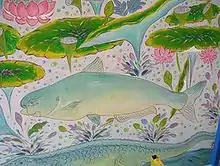Illustration of a Mekong giant catfish at a Buddhist temple in Chiang Khong.