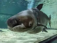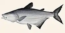 The Mekong giant catfish (Pangasianodon gigas; Thai: ปลาบึก, RTGS: pla buek, pronounced [plāː bɯ̀k]; Khmer: ត្រីរាជ /trəy riec/; Vietnamese: cá tra dầu), is a large, threatened species of catfish (order Siluriformes) in the shark catfish family (Pangasiidae), native to the Mekong basin in Southeast Asia and adjacent China. It is considered critically endangered due to overfishing and habitat loss.[1]