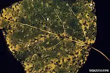 Melampsora medusae is a fungal pathogen, causing a disease of woody plants. The infected trees' leaves turn yellowish-orange. The disease affects mostly conifers, e.g. the Douglas-fir, western larch, tamarack, ponderosa, and lodgepole pine trees, but also some broadleaves, e.g. trembling aspen and poplars. Coniferous hosts are affected in late spring through early August, and trembling aspens and poplars from early summer to late fall. It is one of only two foliage rusts that occur naturally in British Columbia.[1]
