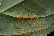 - ↑ Moriondo, F.; Longo, B. Naldini; Longo, N.; Drovandi, F.; Gonnelli, T. (1989). "Some observations on the life-cycle of Melampsora pulcherrima (Bub.) Maire". Phytopathologia Mediterranea. 28 (1): 46–52. JSTOR 42685674.