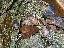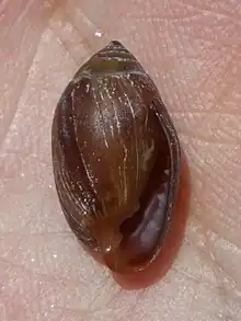 | A shell of Melampus nuxeastaneus on a human hand | |