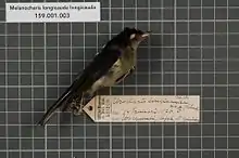 - ↑ BirdLife International (2017). "Melanocharis longicauda". IUCN Red List of Threatened Species. 2017: e.T22718140A118815524. doi:10.2305/IUCN.UK.2017-3.RLTS.T22718140A118815524.en. Retrieved 12 November 2021.