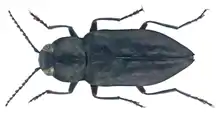 Melanophila acuminata, known generally as the black fire beetle or fire bug, is a species of metallic wood-boring beetle in the family Buprestidae. It is found in the Caribbean, Europe and Northern Asia (excluding China), Central America, North America, and Southern Asia.[1][2][3] They get their common name due to the fact that they swarm freshly burned conifer trees, which they find using sensors on their thorax. Adults are black and 7-11 mm in length.[4]