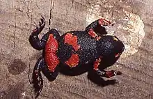Melanophryniscus is a genus of toads in the family Bufonidae.[1][2] They are found in northern half of Argentina, southern Bolivia, southern Brazil, Paraguay, and Uruguay. Common name South American redbelly toads has been coined for them.[1]