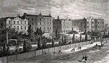 - ↑ "Domestic Intelligence. : The Hospital". The Argus (Melbourne). Vol. II, no. 198. Victoria, Australia. 14 March 1848. p. 2. Retrieved 12 March 2017 – via National Library of Australia., ...announcing that the arrangements for opening the Melbourne Hospital are at length completed, and the building will be open for the reception of patients to morrow...