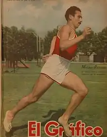 Melchor Palmeiro (26 February 1923 – 31 December 1997)[1] represented Argentina at the 1948 Summer Olympics in London. He was entered in the 1500 m, where he finished fifth in his heat recording a time of 4:01.6 and failed to advance. His personal best in the 1500m was 3:57.8 when he came first at the 1947 South American Championships. He also came second at the Championships in 1943 and again in 1949.[2]