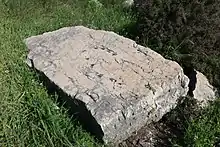 The use of Jerusalem Stone was popular among the Frankish stonemasons of the Crusader Kingdom of Jerusalem in Palestine, who quarried it to make fine, carefully drafted building stones for use in door and window features, among other architectural features.[13] Frankish markings from the distinctive diagonal tools used by their stonemasons can be seen on meleke stones put to secondary use in the walls surrounding the Old City of Jerusalem.[14]